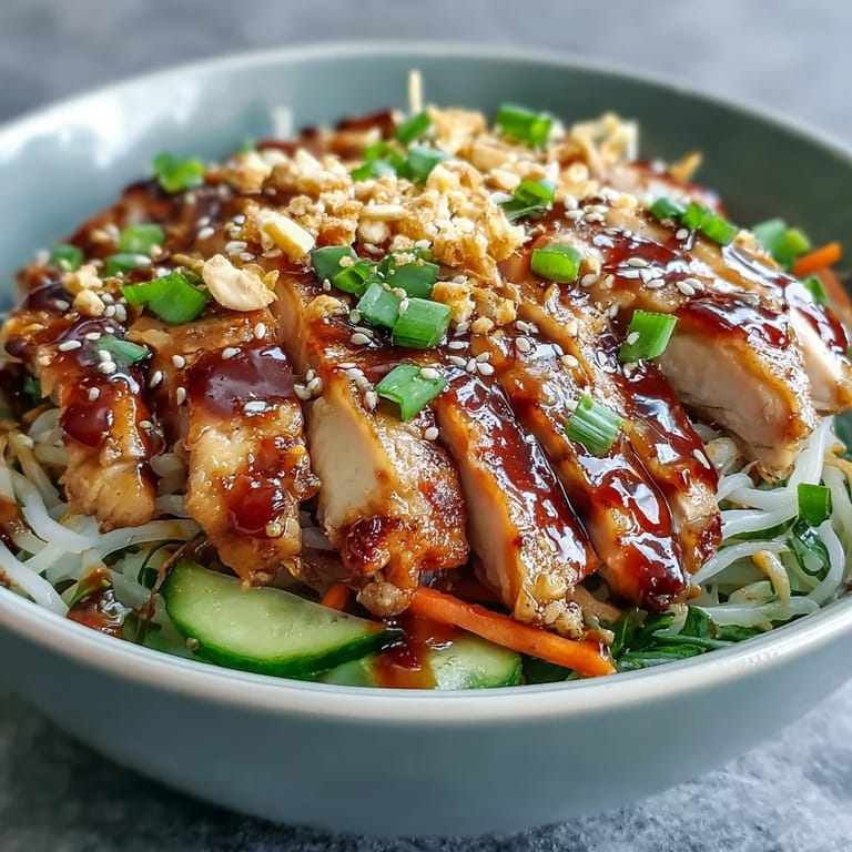 The real magic happens when that sauce hits the warm noodles and chicken—everything gets glossy and unified in a way that feels almost intentional. I learned early on that the ratio of sauce to noodles matters; I used to be stingy with it and ended up with dry bowls, but now I err on the generous side. One extra drizzle can transform the whole eating experience.