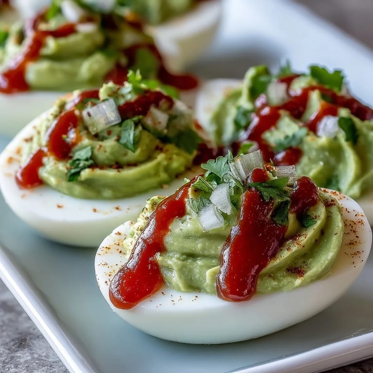 I recall prepping this recipe for a book club night, and my hands felt sticky from peeling eggs while chatting about plot twists. The filling came together so fast that I found myself with extra time to admire the bright green color, and everyone was amused at how fiercely the Sriracha kick contrasted with the mellow yolk-avocado blend. One friend actually challenged me to “go heavier” with the spicy topping — so the drizzle doubled, and the plate disappeared twice as quick.