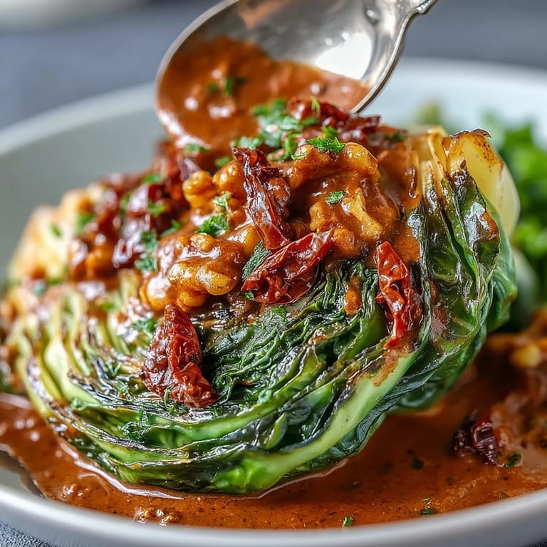 Save The oven timer was going off for the third time that week, and it was always cabbage. My neighbor had dropped off two huge heads from her garden, and I was determined not to waste them. I'd already made slaw and soup, but then I remembered a romesco I'd tasted years ago at a tapas bar in Valencia—smoky, rich, almost meaty in its depth. What if I just roasted the cabbage in wedges and let that sauce do the talking? It worked so well I stopped answering texts until every bite was gone.