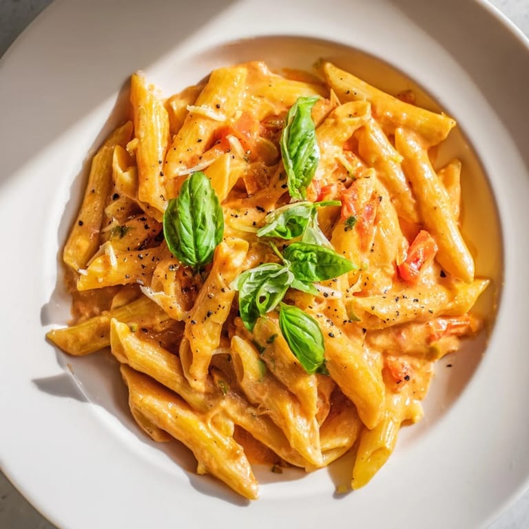 One-pot pasta is brilliant because the starch from the pasta thickens the sauce naturally, so you end up with something velvety without needing cream as a safety net. But the cream here isn't a crutch—it's a choice that makes the tomatoes taste rounder and more complex, almost like they've been caramelized for hours. The garlic and onion cook down completely, so you get their sweetness without biting into chunks, and the fresh basil at the end brings everything back to life with a burst of color and freshness.