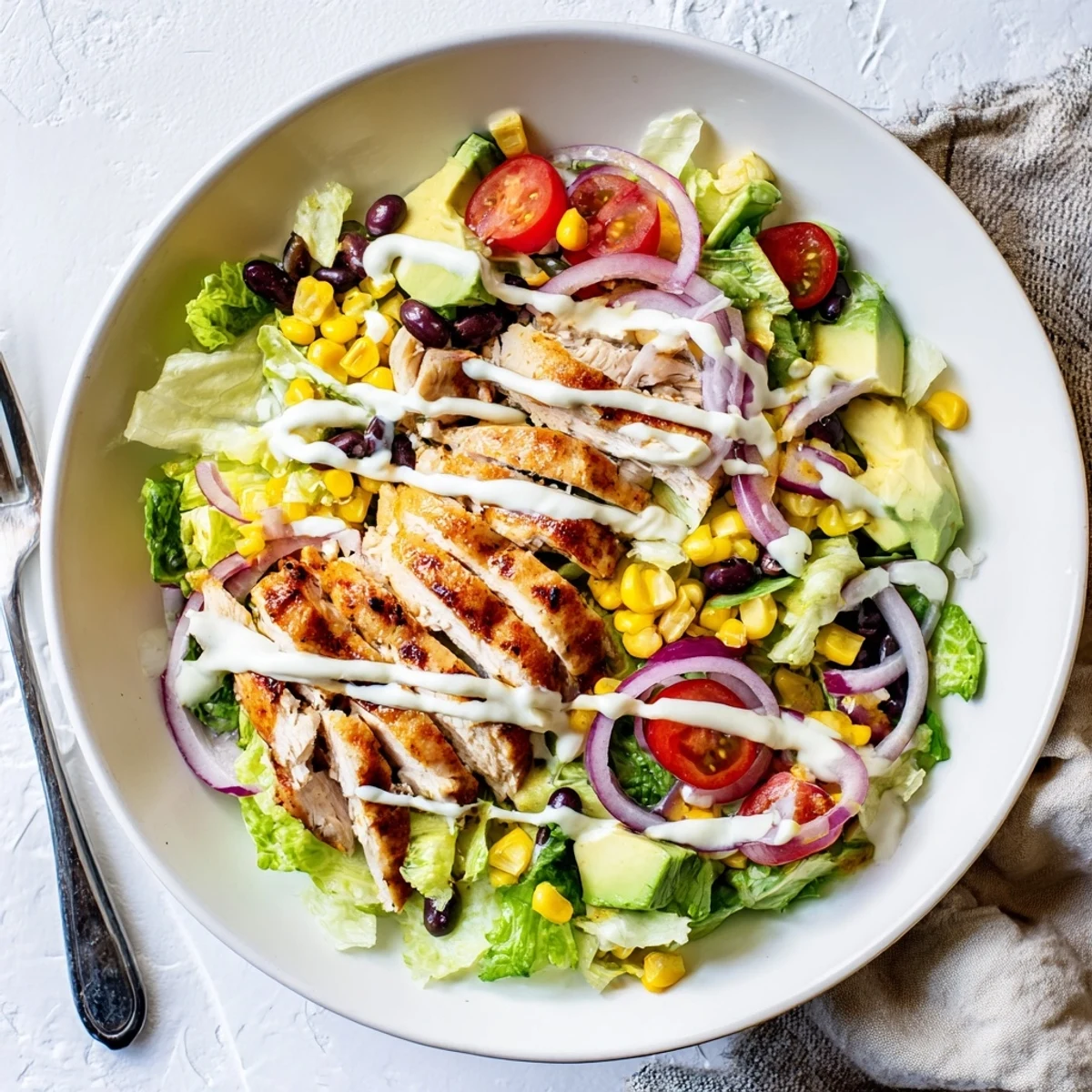 I've swapped the chicken for grilled shrimp when I had some thawing in the fridge, and it worked beautifully. My friend who doesn't eat meat uses thick slices of grilled tofu brushed with the same BBQ sauce, and honestly, it's just as satisfying. You can also add crushed tortilla chips on top for crunch, or swap the ranch for a smoky chipotle version if you want a little heat. The base is flexible enough to handle whatever your fridge or your mood is offering that day.