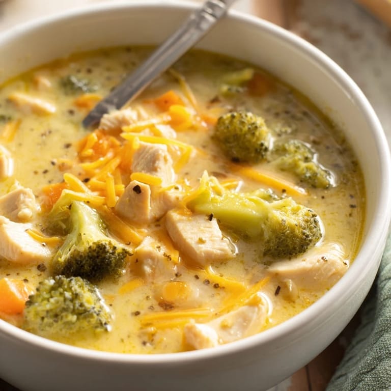 Some nights I use an immersion blender on just half the soup before adding the chicken and cheese. It creates that velvety restaurant consistency while still leaving plenty of broccoli chunks for people who actually want to chew their vegetables.