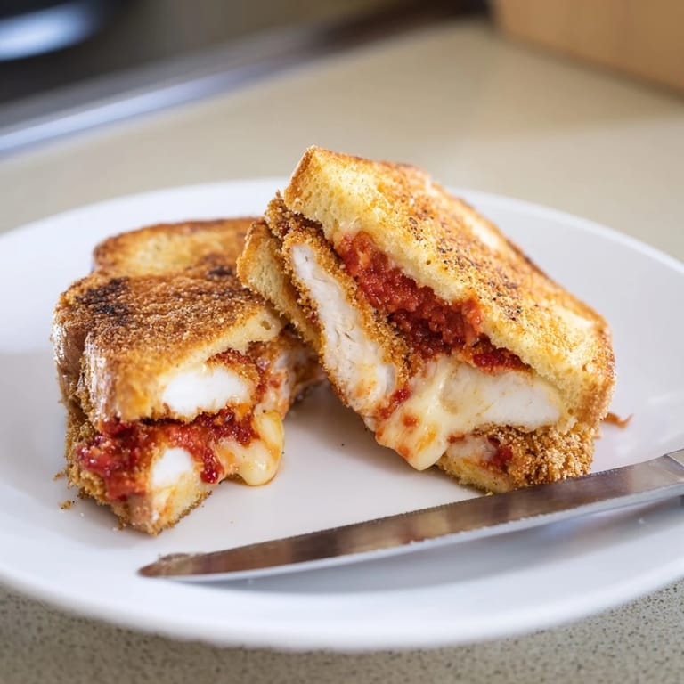 Save The smell of garlic butter hitting a hot pan is what pulled my teenager out of his room one Tuesday night. He appeared in the kitchen doorway, suspicious but curious, as I pressed down on a sandwich that was oozing marinara and mozzarella from every side. I'd been experimenting all week, trying to solve the eternal problem of leftover chicken cutlets, and this was the result. One bite later, he declared it better than anything I'd ever ordered from the Italian place down the street. I couldn't argue.