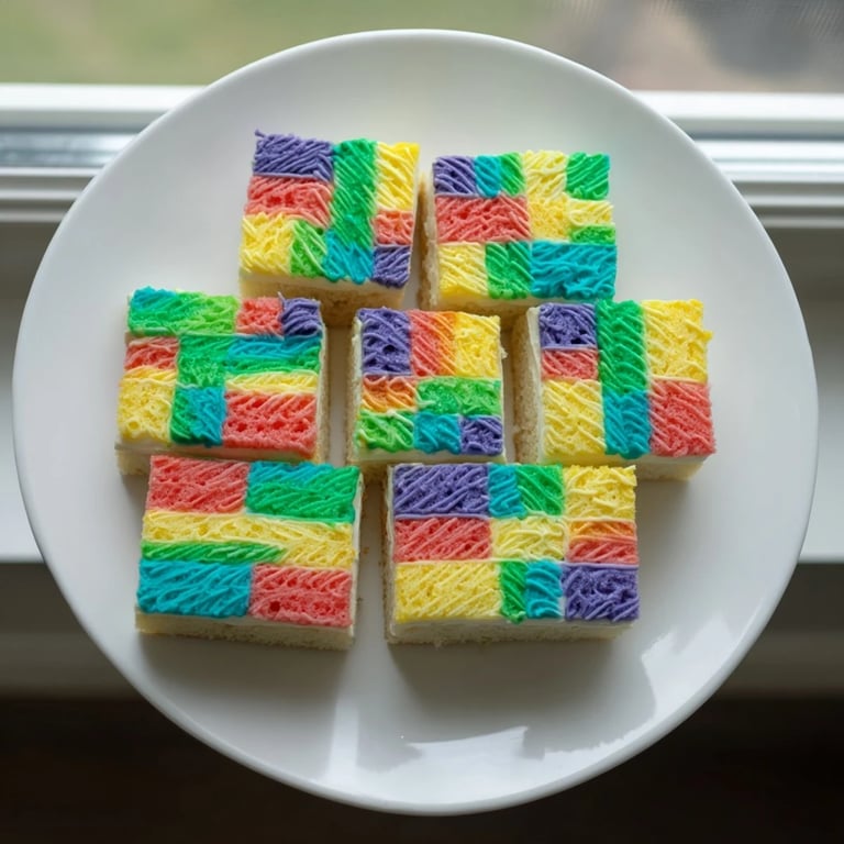 Save I discovered this cake while visiting my grandmother's sewing room on a rainy afternoon. Surrounded by fabric scraps in every color imaginable, she mentioned how much she wished her desserts could be as beautiful and purposeful as her quilts. That simple wish sparked something in me, and I spent the next week experimenting until I created a cake that captures that same patchwork magic—each colored square a deliberate choice, layered and woven together like the quilts she'd spent her life perfecting.