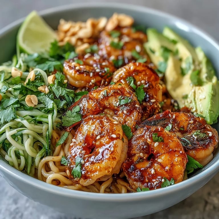 Save There's something magical about the moment when you pull grilled shrimp off the heat and that smoke curls up—it happened on a sweltering July evening when my neighbor handed me a bag of perfectly fresh shrimp from the market, and I suddenly had to figure out what to do with them before they lost their shimmer. I'd been craving something light but deeply satisfying, something that felt like summer on a plate, and this bowl came together almost by accident that night. The sesame noodles were already cooling in the fridge, the cucumber was begging to be sliced, and within thirty minutes, I had created something that became the go-to meal whenever I wanted to impress without the stress.