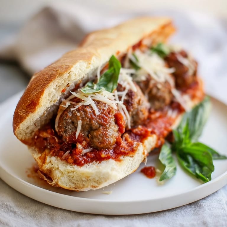 Save This sandwich harmoniously brings together simple ingredients with rich Italian flavors. The freshly baked meatballs locked in savory tomato sauce create a filling experience unlike store-bought sandwiches. Toasting the rolls enhances their crustiness, while fresh herbs add a bright note at the end. This recipe bridges classic comfort with a touch of rustic charm, making every bite memorable.