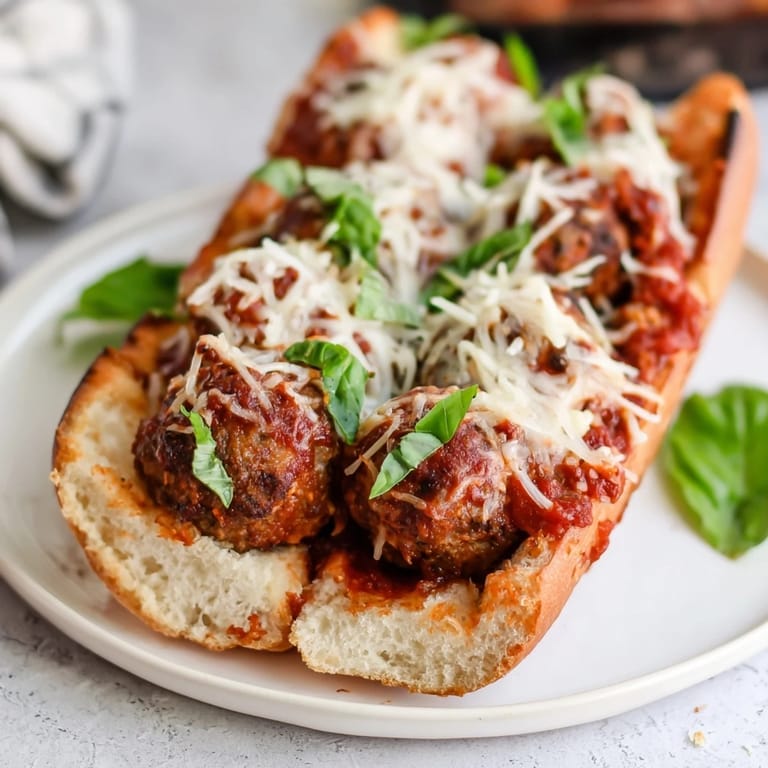 Save Experience the comforting joy of Meatball Marinara Sub Sandwiches, where tender, juicy beef meatballs swim in a rich, aromatic marinara sauce. Nestled inside toasted rustic rolls and crowned with melting mozzarella and Parmesan cheese, these sandwiches offer a warm, hearty meal perfect for cozy family dinners or casual gatherings. The blend of herbs, the savory sauce, and the gooey cheese create an irresistible Italian-American classic that satisfies every craving.
