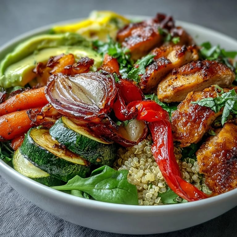 Absolutely. Roast vegetables and cook quinoa up to 3 days ahead. Marinate chicken the night before for enhanced flavor. Assemble bowls just before serving for optimal texture.