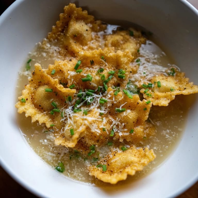 Save I stumbled onto this idea after burning a batch of roasted pasta meant for soup. The tiny shells had crisped up so beautifully that I couldn't stop snacking on them, and suddenly I thought: what if I served them like cereal? The absurdity made me laugh, but the first spoonful of crispy pasta floating in warm parmesan broth felt oddly comforting. It's playful, a little odd, and surprisingly satisfying in a way that makes everyone at the table pause and smile.